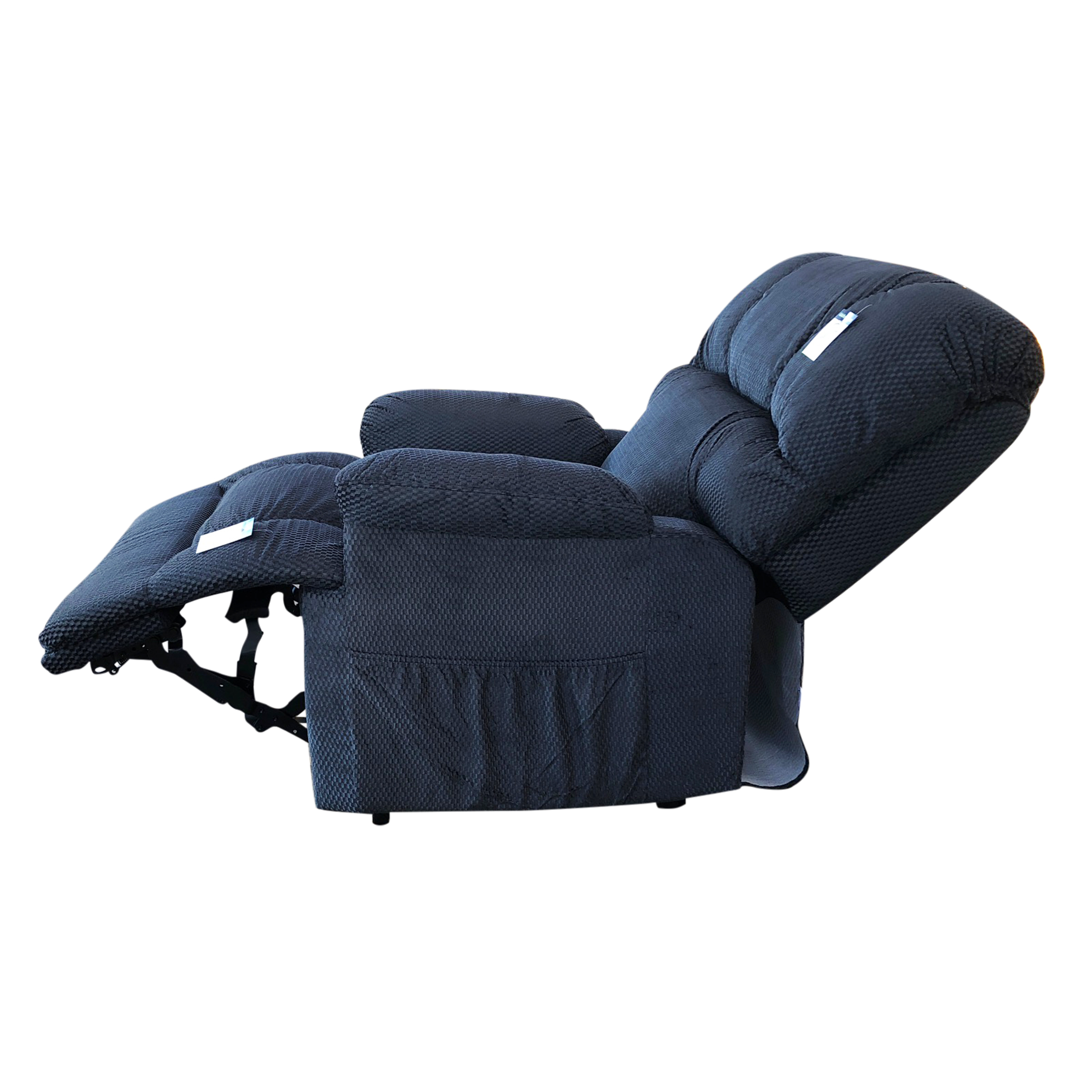 The Reclining Electric Lift Chair is designed to assist those who have difficulty rising from their armchair. Covered in comfortable 3M stain-proof fabric, it boasts a high-density steel and wood-framed construction for durability. The standout feature is its dual motors, allowing the seat and backrest to move independently for customized comfort.