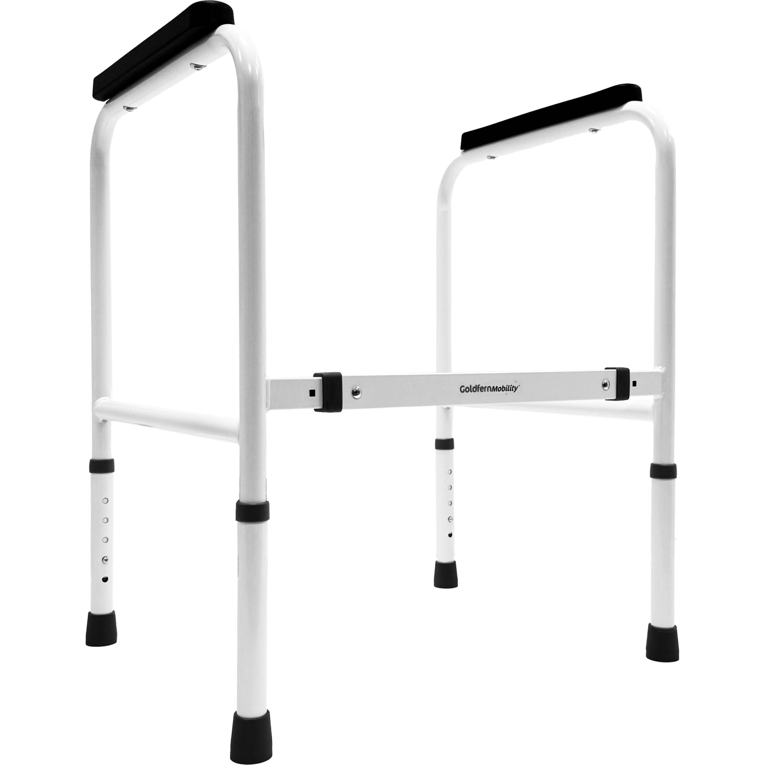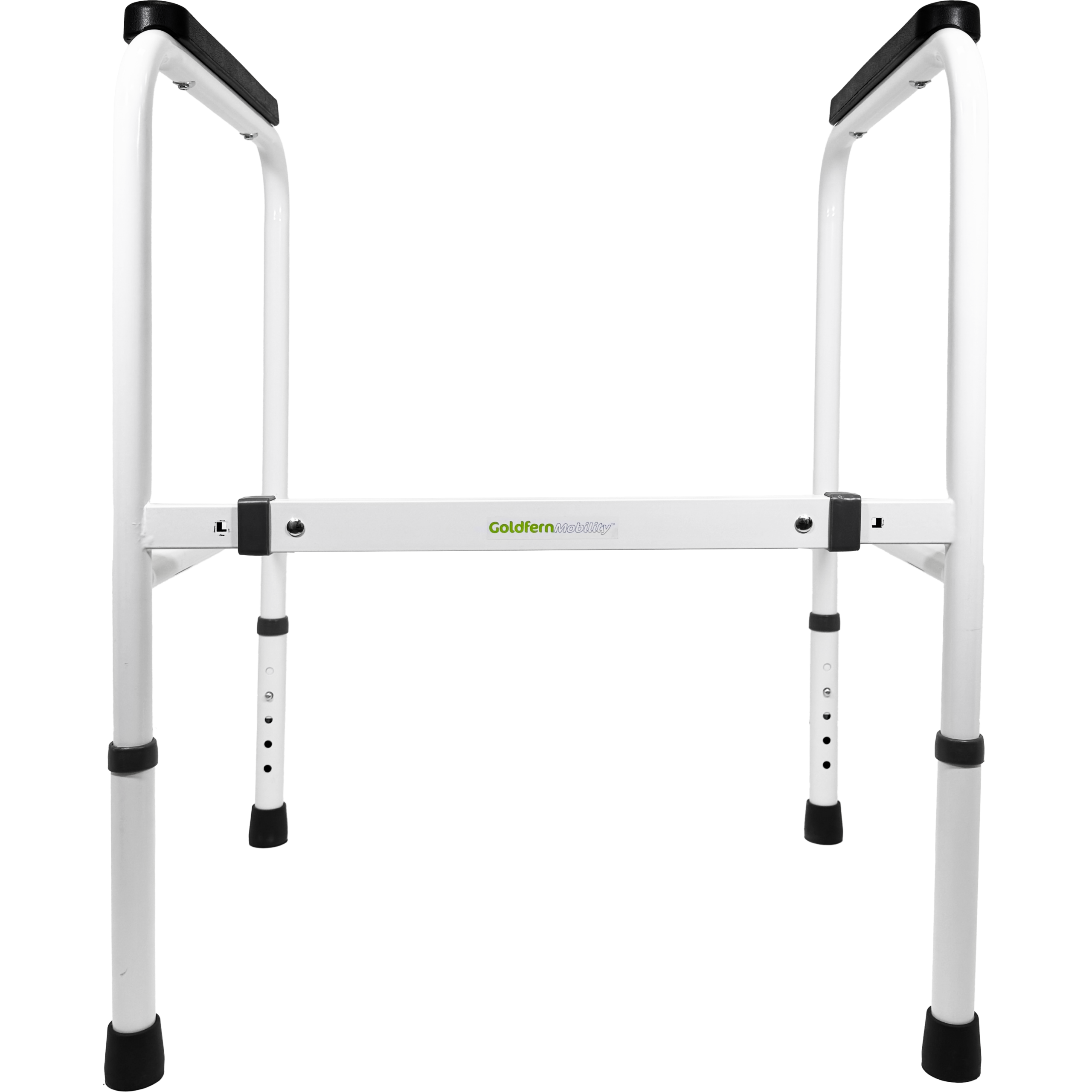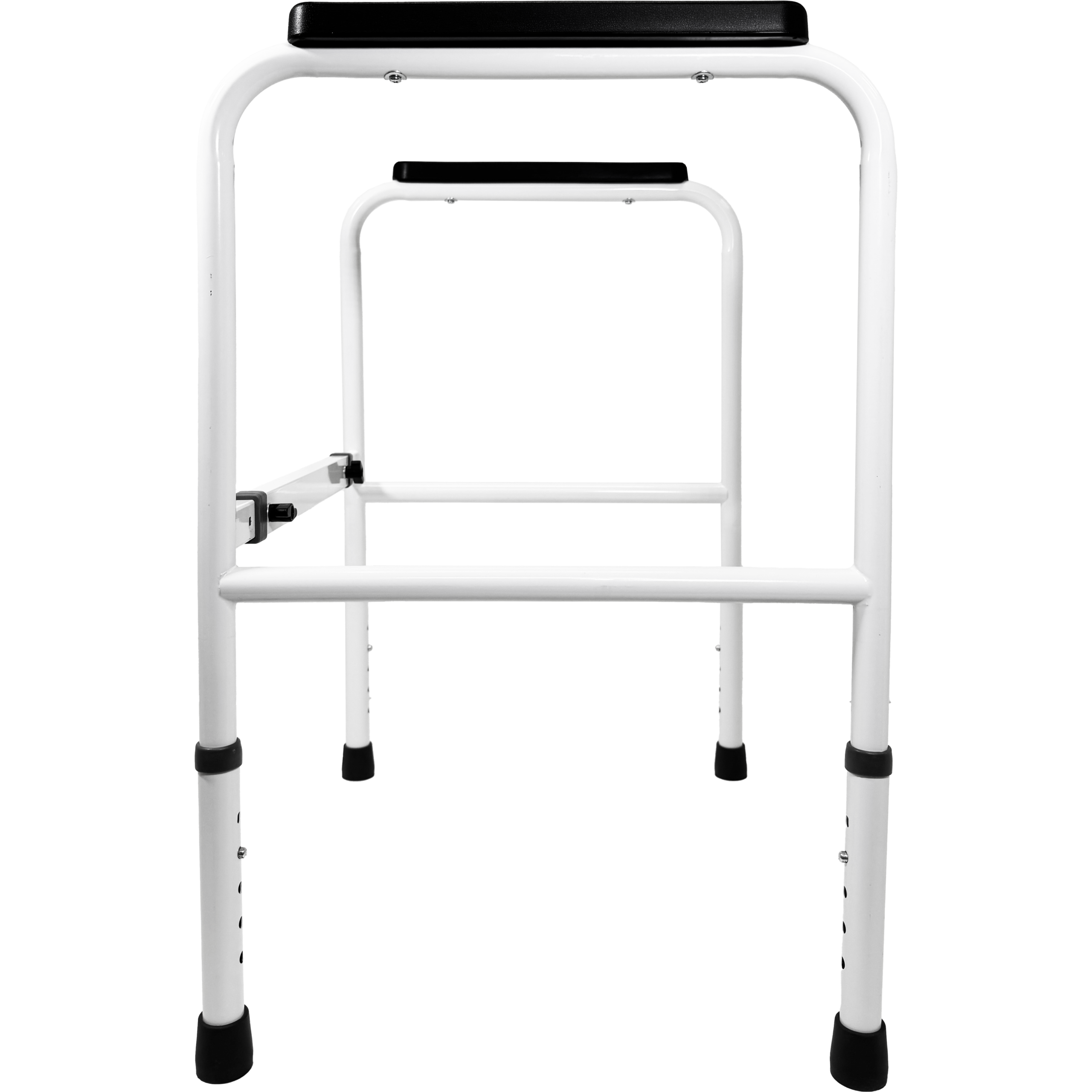 The Freestanding Toilet Surround is designed to provide the user with added stability when getting on and off the toilet. The frame is made from lightweight aluminium and powder-coated white. Each leg is height adjustable and fitted with non-slip rubber feet (these can be swapped for suction-cup feet). The unique feature of this frame is the adjustable width from both sides, allowing the frame to fit in even the trickiest of spaces.