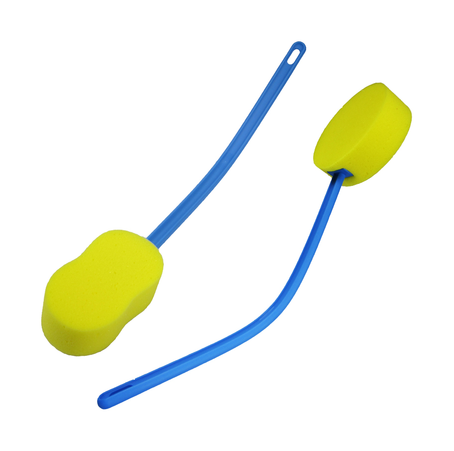 Get to those hard to reach places easier with this long handle sponge. Strong plastic handle is curved and easy to clean while the sponge head is absorbent, soft and non-abrasive, and is available in two shapes.